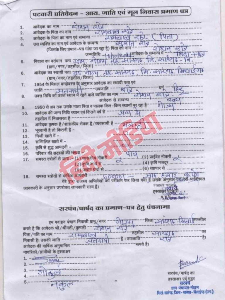 जानकारी के अनुसार,फर्जी प्रमाणपत्र का उपयोग सरकारी कार्यों में किया गया, जिसके बाद दस्तावेज़ की जांच में यह गड़बड़ी सामने आई। प्रमाणपत्र पर लगी सील और सिग्नेचर पटवारी के असली हस्ताक्षर से मेल नहीं खाते, जिससे धोखाधड़ी का मामला उजागर हो रहा,आखिर कितने पटवारीयो के फर्जी सील साइन लगाकर कितने लोगों को आय ,जाति, निवास पत्र जारी किया होगा ये जांच में खुलासा होने पर जानकारी होगा क्या इस तरह से फर्जी करने वाले प्रकाश कम्प्यूटर के ऊपर कार्यवाही होगी अब देखना यह होगा खबर चलने के बाद शासन प्रशासन क्या कार्यवाही करती है