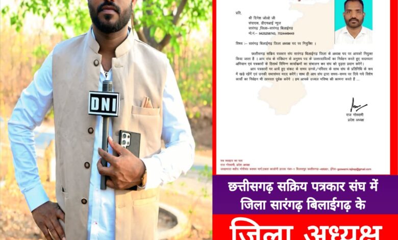 पत्रकार दिनेश जोल्हे बना ‘छत्तीसगढ़ सक्रिय पत्रकार संघ’ सारंगढ़ का जिलाध्यक्ष।